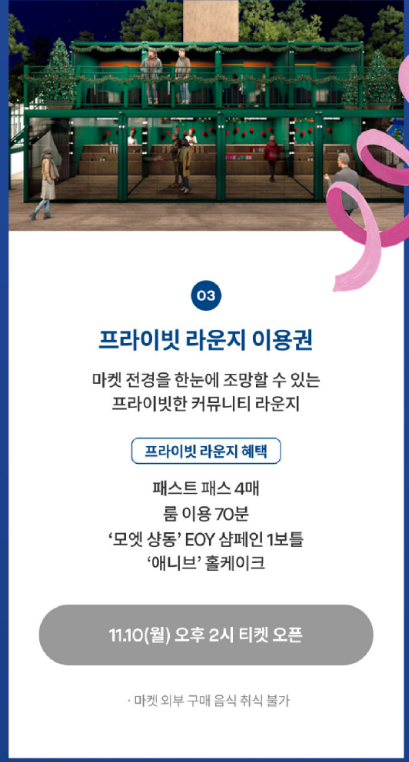 - 마켓 전경을 한눈에 볼 수 있는 단독 라운지