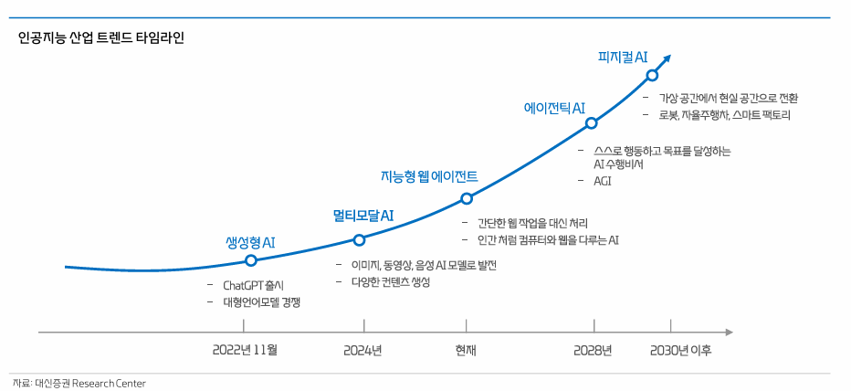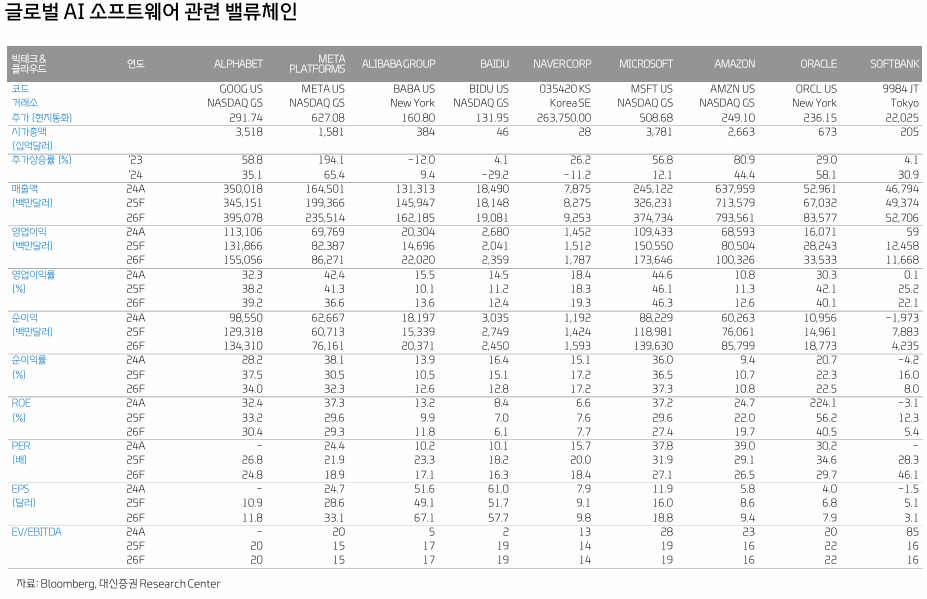 AI 시대의 주도권은 기술력뿐 아니라 ‘플랫폼 확장력’에 달려 있습니다. 대신증권 리포트에 따르면, AI 산업의 중심에는 다음과 같은 기업들이 자리하고 있습니다.