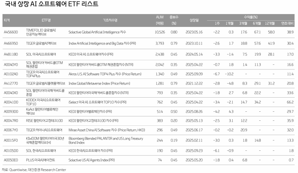 - 국내 ETF: TIMEFOLIO 글로벌AI, TIGER 글로벌AI액티브, SOL 미국AI소프트웨어 등