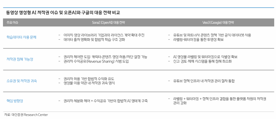 | 이슈 | OpenAI (Sora2) | Google (Veo3) |