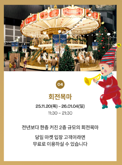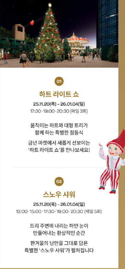 ✔ 인생샷 스팟: 회전목마·트리 앞·라이트 터널·스노우 샤워 구역