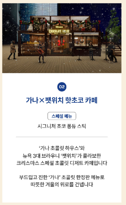 11월 말부터 1월 초까지 이어지는 기간 동안, 잠실 롯데타운에서 따뜻하고 낭만적인 연말 분위기를 느껴보세요.