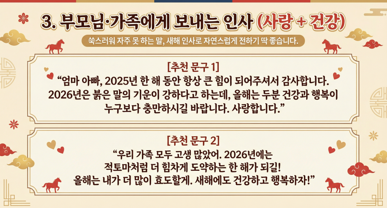 올해는 내가 더 많이 효도할게. 새해에도 건강하고 행복하자!”
